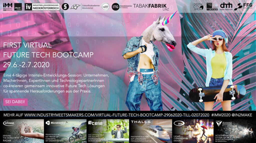 1. Virtual Future Tech Bootcamp 29.6. bis 2.7.2020 – https://www.industrymeetsmakers.com