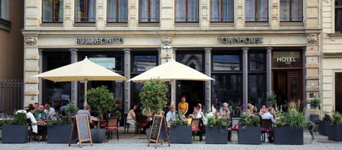 Im Bull & Bonito liegt der Fokus auf der Erlebnisgastronomie, wie Manager Felix Schwarm erklärt: „Wir möchten den Gästen in unserem Restaurant eine Vision, eine Einstellung mitgeben. Man soll nicht nur herkommen, weil man Hunger hat, sondern weil man etwas erleben und geboten haben möchte“. Tatsächlich kommt bei einem kühlen Getränk auf dem Freisitz, umgeben von Mandarinenbäumen und vis à vis dem berühmten Bach-Denkmal vor der Thomaskirche, direkt Urlaubsfeeling auf. Besonders originell und einladend wirken die Reservierungsschilder in Form von Schiefertafeln, mit welchen die Gäste an den Tischen empfangen werden.